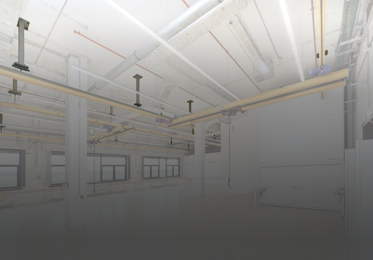 Do you have a reinforced concrete ceiling and have to hang the suspended crane installation from the ceiling because of ventilation ducts, for example?