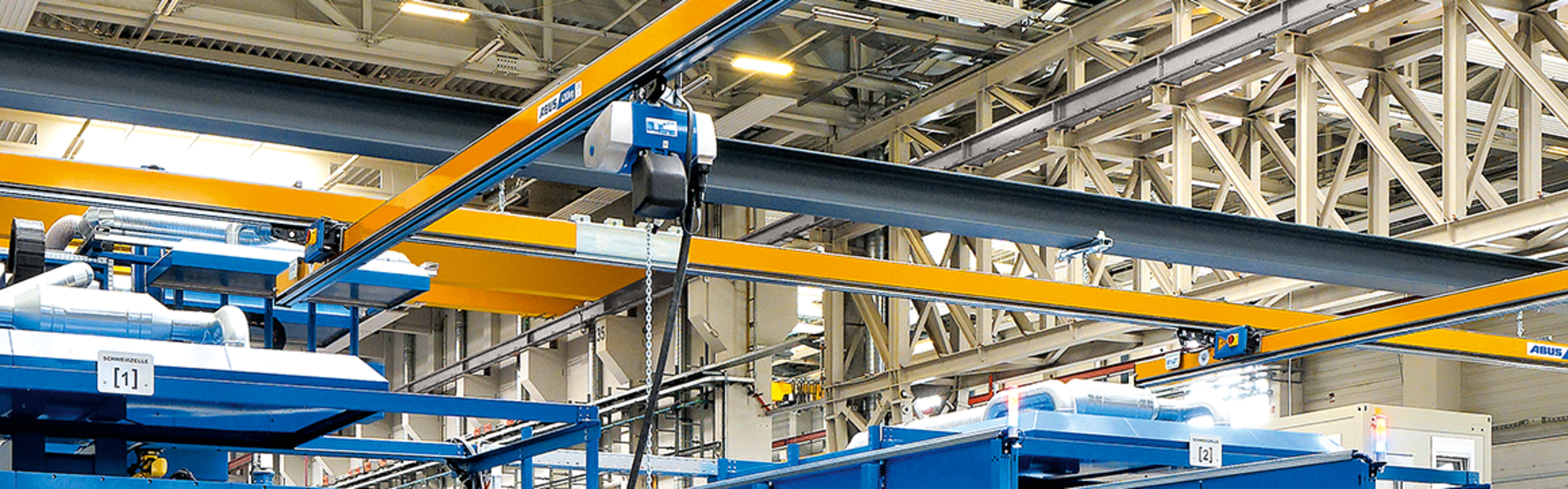 The ABUS single girder crane EHB is the most straightforward HB system solution for area-coverage materials handling within buildings. The EHB is a very light crane due to the simple construction of two crane tracks and one crane girder which makes it easy to move the EHB manually. This crane is ideal to be installed in lightweight buildings with low load-bearing ability.
