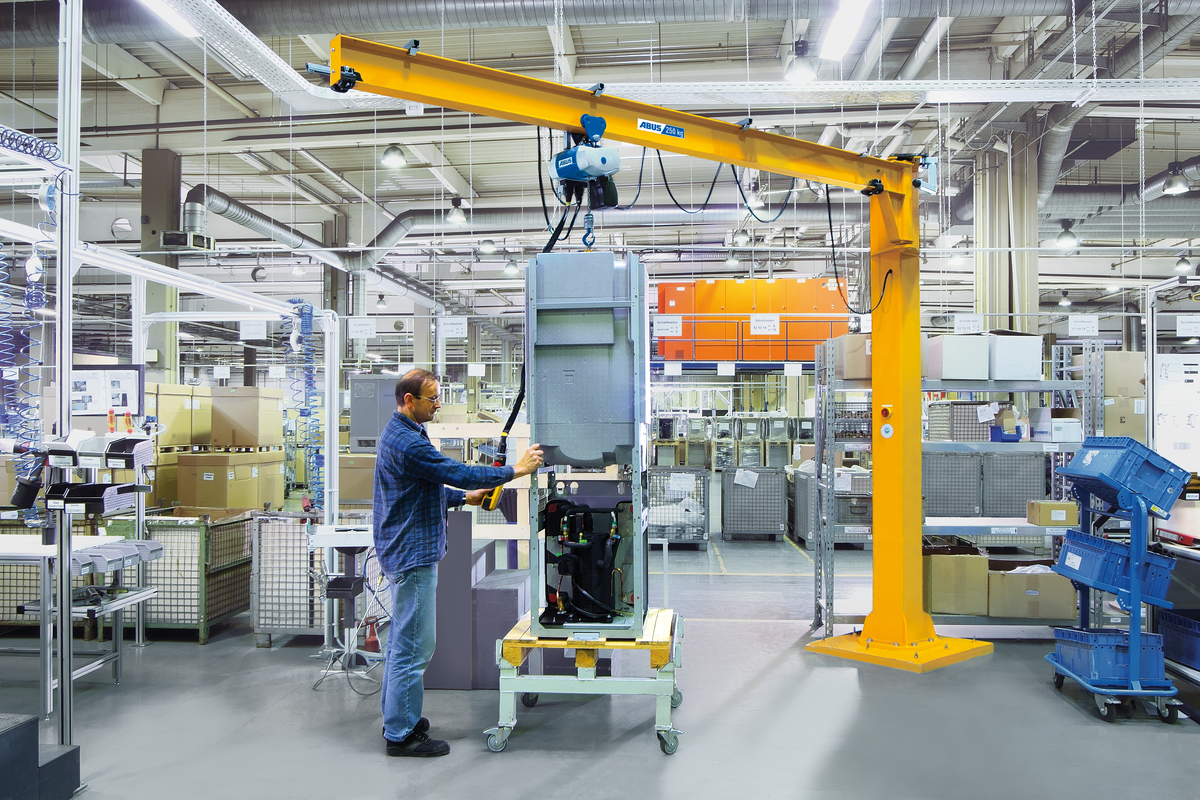 The pillar jib crane LSX has been designed for freestanding installation on the building floor. This workstation crane provides a slew range of 270° with jib arm lengths of up to 7 m and Safe Working Loads (SWL) of up to 0.5 t.