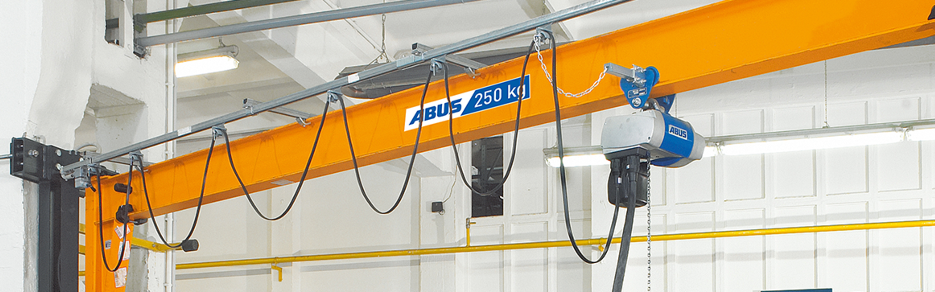 Low ceilings and lack of floor space are typical criteria for selecting the LWX wall jib crane. Its low-build headroom dimensions offer a favourable lift height. In addition to the comprehensive standard features, this crane may adapted individually by making use of useful additions such as electric hoist travelling or radio remote control ABURemote.